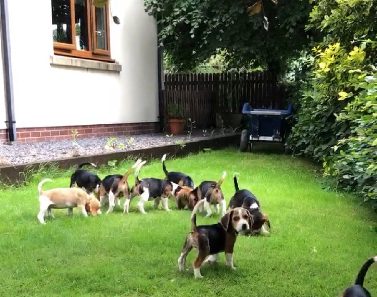 Our kind natured and fun beagle Molly has 9 puppies ready to go this weekend. We have mum, gran and grandad here on the farm.