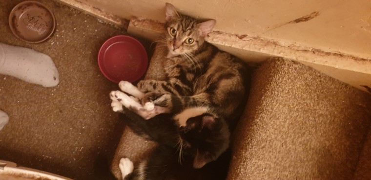 Two cats since birth lovey cats both are females ones black and white patches the other one is tiger tappy well looked after they are indoors cats they are microchiped but not newted they can get along well children but not with dogs cat bowls are included there travel box’s is also included any further information..