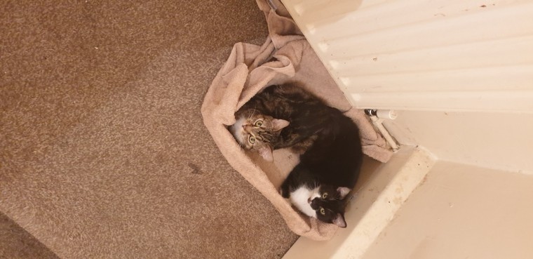 Two cats since birth lovey cats both are females ones black and white patches the other one is tiger tappy well looked after they are indoors cats they are microchiped but not newted they can get along well children but not with dogs cat bowls are included there travel box’s is also included any further information..