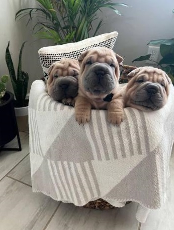 Shar-pei puppies. Four girls, Four boys. They come with the papers. Currently, all pups are ready for new homes. Eating solid foods primarily purina puppy chows three times per day with a bunch of heat. Great tempered pups Mom and Dad are on the spot loving dogs love to go hiking and walking to the park. The wrinkles are just irresistible potty trained for further details email me or text me whatever is perfect 10 weeks old asking them to go to gentle loving homes of serious buyers please thank you.,Text us through (707) 750-7797 or Please check Our website for more details toydogsonlinestore.com .
