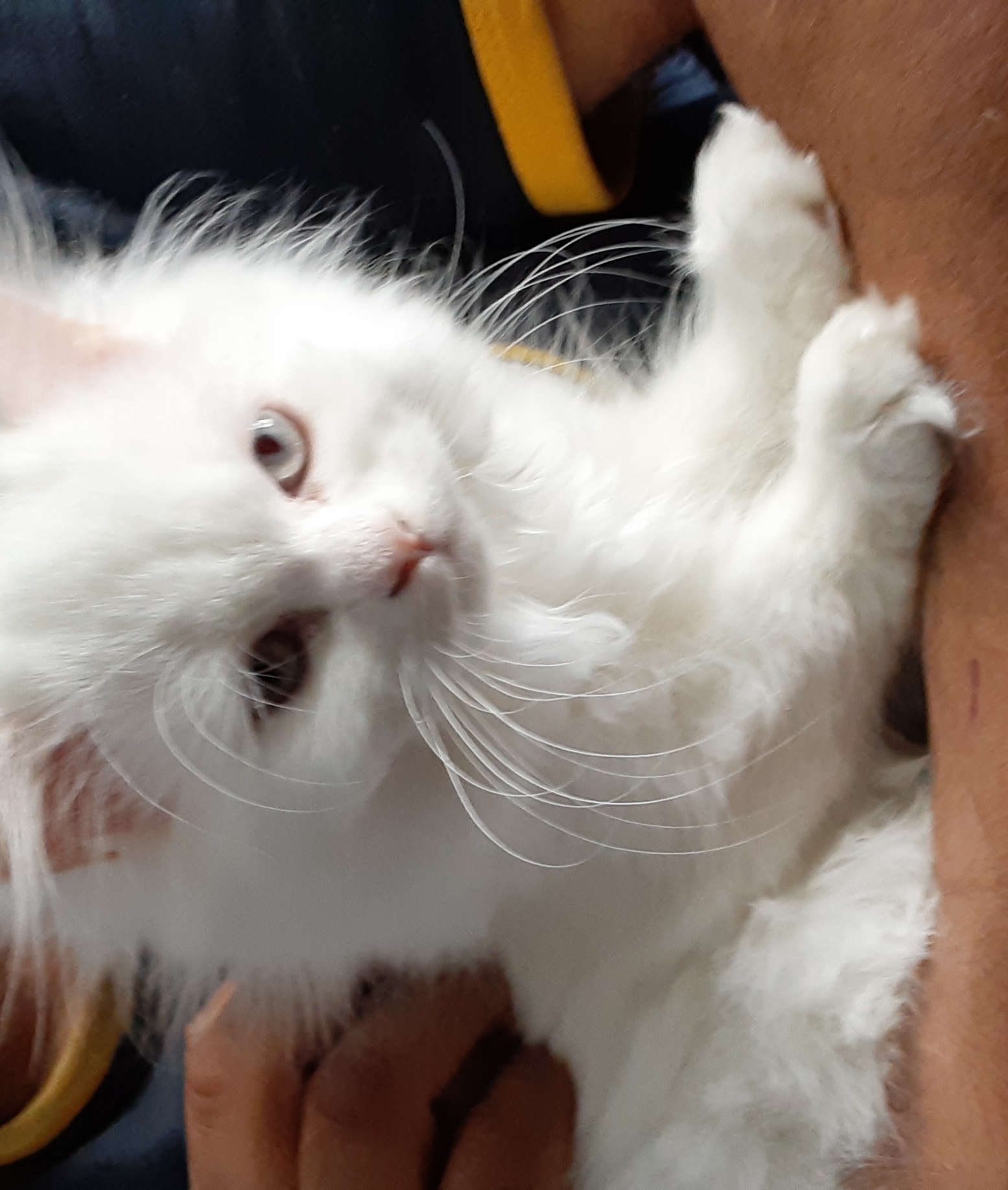 Home kitten litter trained ,Perfectly healthy Not spayed. No shots. Very shy but likes to be loved .